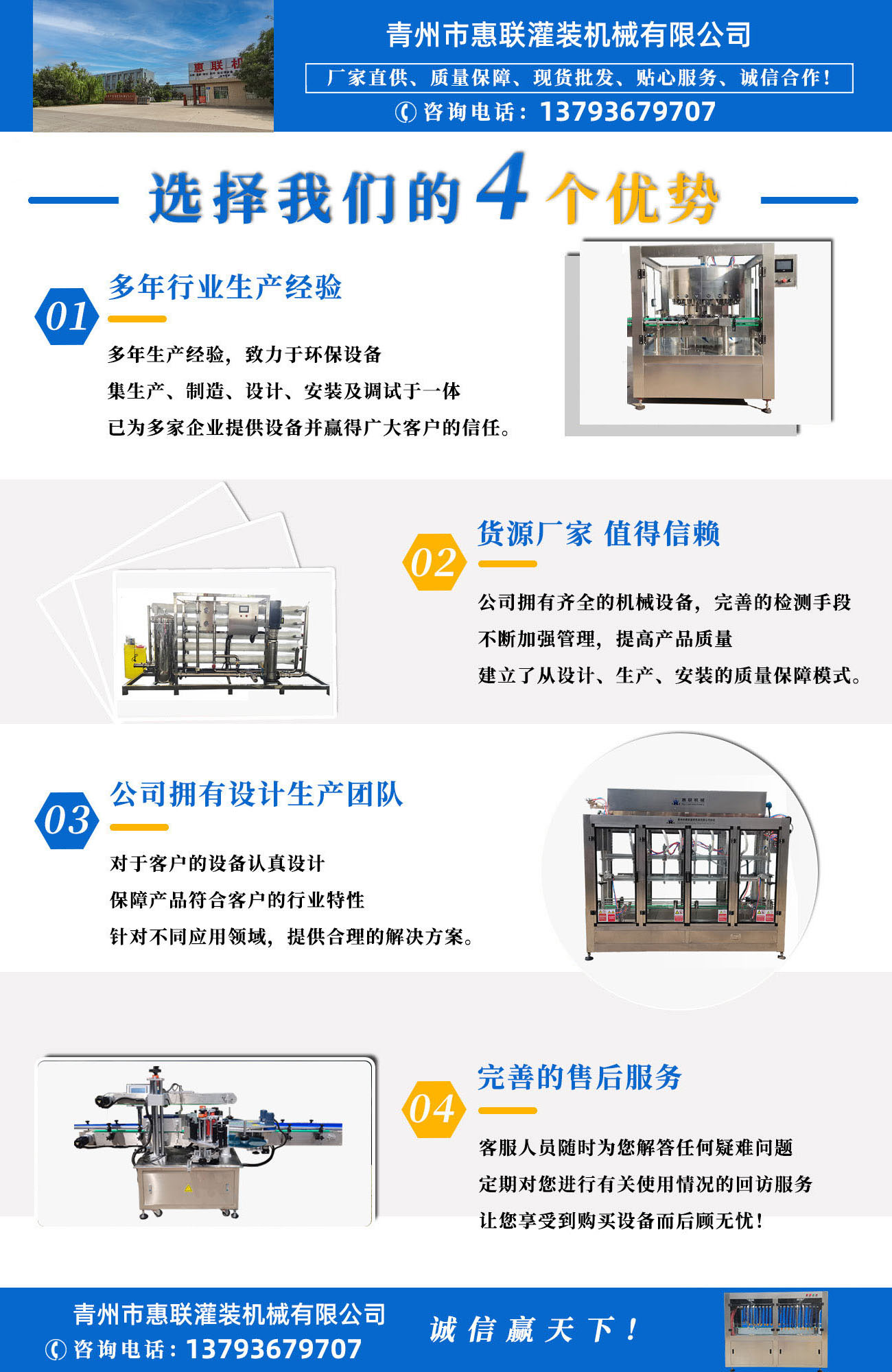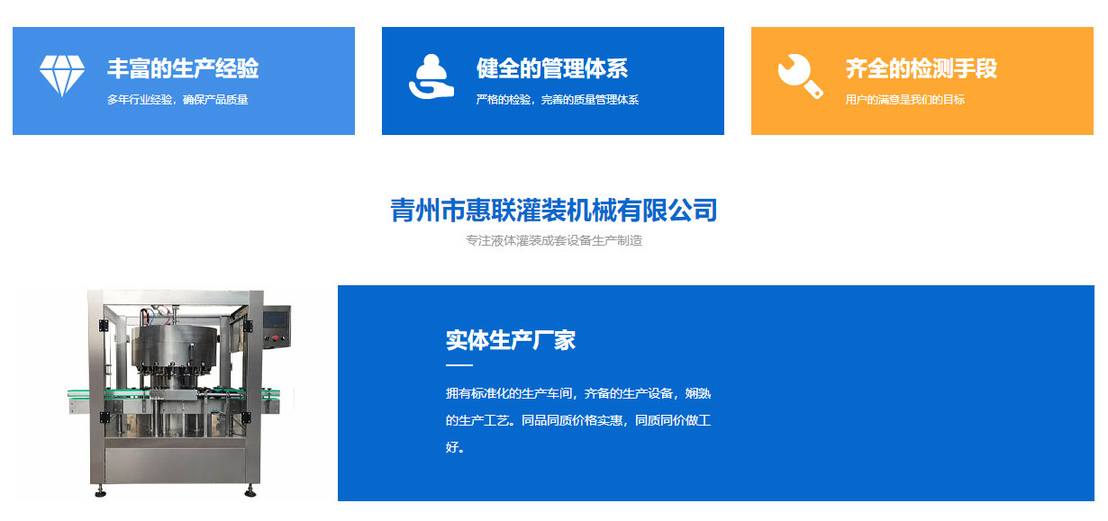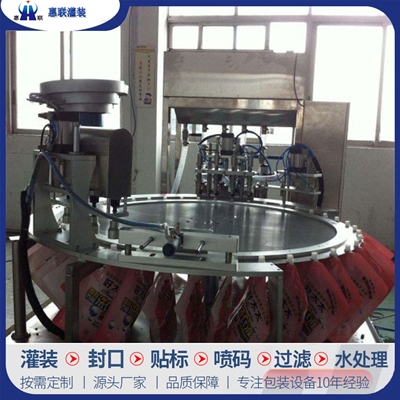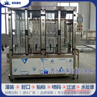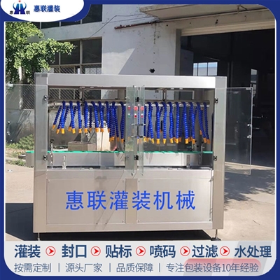 青州市惠聯(lián)灌裝機(jī)械有限公司是一家集生產(chǎn)研發(fā)、銷售、服務(wù)于一體的液體灌裝成套設(shè)備生產(chǎn)企業(yè),可根據(jù)廠家要求設(shè)計(jì)合理液體灌裝生產(chǎn)線,為用戶提供技術(shù)咨詢、設(shè)計(jì)工藝、場區(qū)平面布置、工藝改造、設(shè)備安裝調(diào)試等完善服務(wù)。 公司生產(chǎn)制造各種類型液體灌裝機(jī)、過濾機(jī),水處理設(shè)備及液體灌裝成套設(shè)備。主要產(chǎn)品有:白酒、葡萄酒、黃酒等酒水灌裝機(jī)、食用油、機(jī)油、潤滑油等油類灌裝機(jī)、醬油醋、老抽、生抽等調(diào)味品灌裝機(jī)、防凍液、玻璃水灌裝機(jī)、酒精、84消毒液灌裝機(jī)、車用尿素灌裝機(jī)、口服液灌裝機(jī)、洗滌劑灌裝機(jī)等多種液體、膏體灌裝設(shè)備,全自動/半自動灌裝機(jī)型號多,規(guī)格全,洗瓶機(jī)、瓶子封口機(jī)、打塞機(jī)、熱縮機(jī)、瓶子烘干機(jī)、貼標(biāo)機(jī)、噴碼機(jī)、輸送線、裝箱機(jī)、水處理設(shè)備等全套生產(chǎn)線相關(guān)配套設(shè)備齊全,自產(chǎn)自銷,一站式購齊,售后無憂。